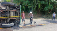 Satlantas Polres Kotamobagu Respons Aduan Call Center 110 dan Tangani Kecelakaan Tunggal di Lobong