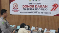 Jakarta. Dalam rangka menyambut Hari Bhayangkara ke-79, Polresta Sidoarjo menggelar kegiatan bakti sosial donor darah. selengkapnya