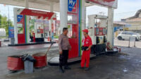Personel Polsek Mapanget melaksanakan pemantauan dan pengaturan arus lalu lintas di sejumlah SPBU, Selasa (4/2/2025). selengkapnya