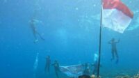 Sambut HUT ke-80 RI, Polisi dan Masyarakat di Sitaro Kibarkan Bendera Merah Putih di Bawah Laut