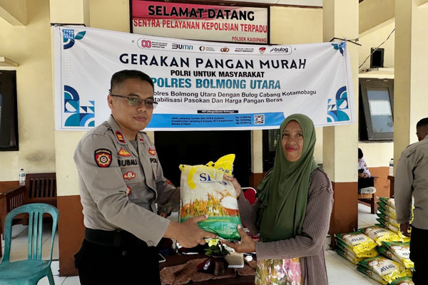 Polres Bolmong Utara dan jajaran terus melaksanakan Gerakan Pangan Murah Polri dan Bulog. Seperti yang digelar di halaman kantor Polsek Kaidipang, pada Minggu (17/8/2025) pagi.