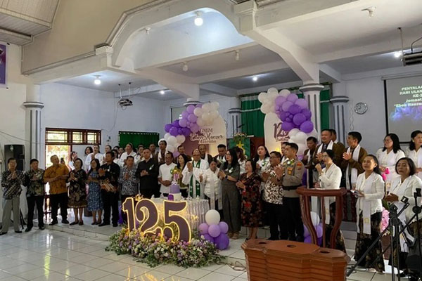 Jemaat GMIM Eben Heazer Manembo, Kecamatan Langowan Selatan, Kabupaten Minahasa merayakan ibadah syukur Hari Ulang Tahun ke-125 dengan penuh sukacita, Minggu (12/10/2025) siang.