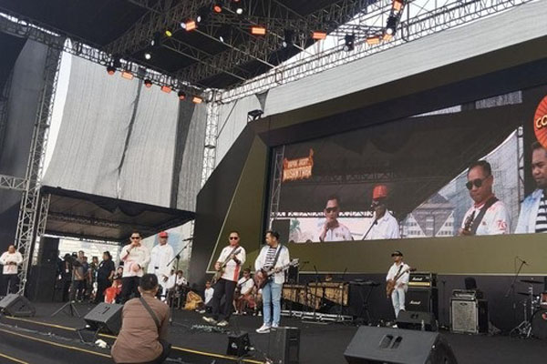 Keduanya naik ke panggung utama dan menyanyikan lima lagu di hadapan masyarakat. Di atas panggung, Panglima TNI bermain gitar dan Kapolri menjadi vokalisnya. ‘Ku Tak Bisa’ dari Slank pun menjadi lagu pembuka.