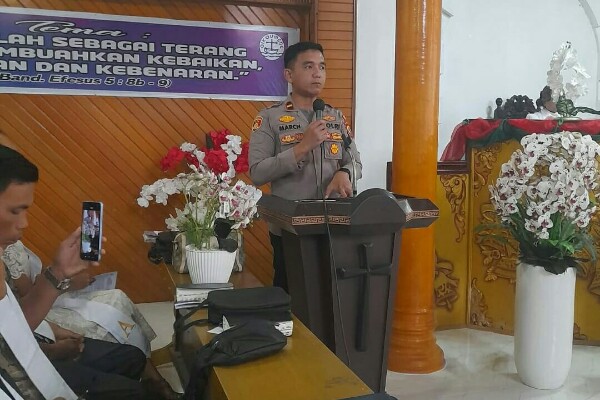 Kapolsek juga hadir memberikan pesan kamtibmas dalam ibadah Natal dan Tahun Baru di GMIM Sion Wolaang, Langowan.