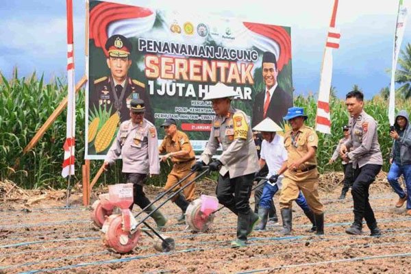 Dilanjutkan penanaman jagung secara simbolis oleh Kapolres, Forkopimda, serta perwakilan masyarakat.