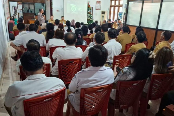Kapolsek Wenang AKP Rusman M. Saleh menghadiri rapat koordinasi Tripika Kecamatan Wenang yang membahas analisis dan evaluasi (anev) layanan call center 112, Selasa (7/1/2025).