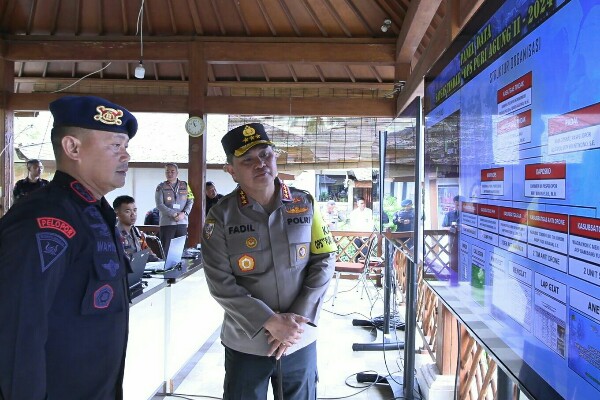 Sehari sebelum pelaksanaan kegiatan KTT IAF ke-2 di Bali, Kabaharkam Polri selaku Kaops Puri Agung II Komjen Fadil Imran memantau langsung kerja personel di pos komando taktis (poskotis) Satgas Tindak dan Satgas Walrolakir, Sabtu (31/8/2024).