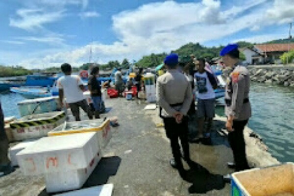 Sat Polairud Polres Mitra dalam pelaksanaan Polmas Pesisir di sekitaran dermaga perikanan Belang, memberikan imbauan kepada masyarakat pesisir pantai untuk meningkatkan kesadaran akan pentingnya keamanan di wilayah perairan, dan memperhatikan cuaca untuk melaut.