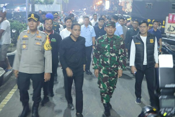 Polres Kotamobagu bersama unsur Forum Koordinasi Pimpinan Daerah (Forkopimda) serta stakeholder terkait melaksanakan patroli jalan kaki bersama bersama memantau titik-titik keramaian.