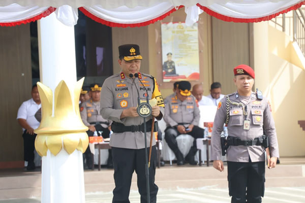 MANADO, Humas Polda Sulut – Kapolda Sulawesi Utara (Sulut) Irjen Pol Roycke Harry Langie memimpin Apel Gelar Pasukan Operasi Kepolisian Kewilayahan “Zebra Samrat-2025”, Senin (17/11) pagi, di lapangan upacara Mapolda Sulut. Apel diikuti personel Polri, TNI, Dinas Perhubungan, Sat Pol PP, Dispenda, dan Jasa Raharja.