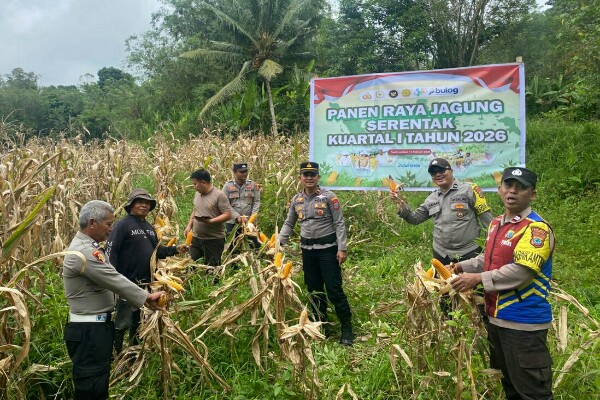 MINAHASA, Humas Polda Sulut – Personel Polsek Toulimambot bersama pemerintah desa dan kelompok tani turun ke ladang untuk melaksanakan panen jagung kuartal I tahun 2026, di perkebunan Desa Tonsea Lama, Kecamatan Tondano Utara.