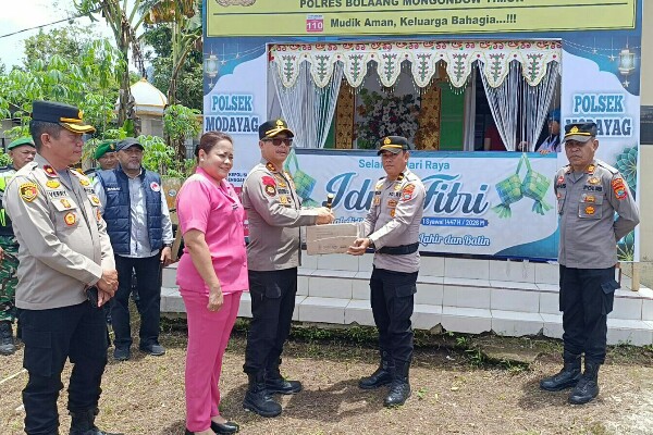 BOLTIM, Humas Polda Sulut – Kapolres Bolmong Timur (Boltim) AKBP Golfried Hasiholan didampingi Ketua Bhayangkari Cabang Boltim Ny. Joice Golfried mengunjungi Pos Pengamanan (Pospam) Modayag, Selasa (17/03/2026).