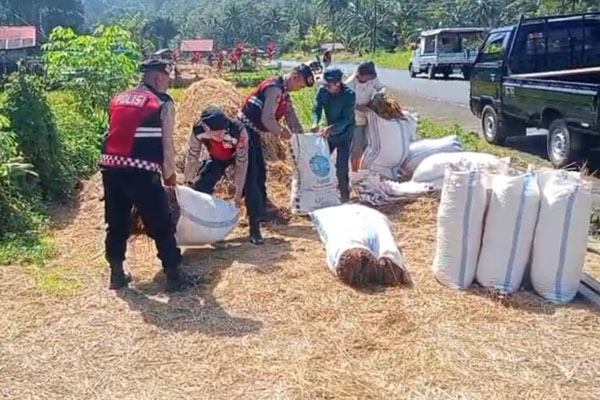 Sebagai wujud kepedulian dan kedekatan dengan masyarakat, personel Satuan Samapta Polres Tomohon yang dipimpin KBO Ipda Yohanis H. Pandelaki membantu petani mengangkat batang padi untuk olahan pupuk, di area persawahan Wanambawa kelurahan Woloan 3, Kecamatan Tomohon Barat, Senin (20/10/2025) pagi.