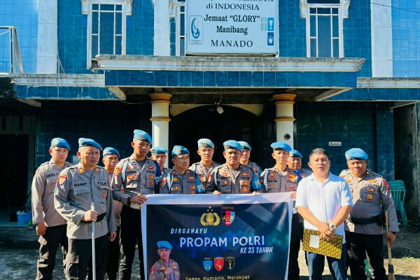 “Dalam rangka Hari Jadi ke-23 Propam Polri, Bidang Propam Polda Sulut melaksanakan bakti sosial dan pemberian bansos di Masjid Nurul Yaqin Sario Manado dan Gereja GPdi Glory Manibang Manado,” kata Kabid Propam Polda Sulut.