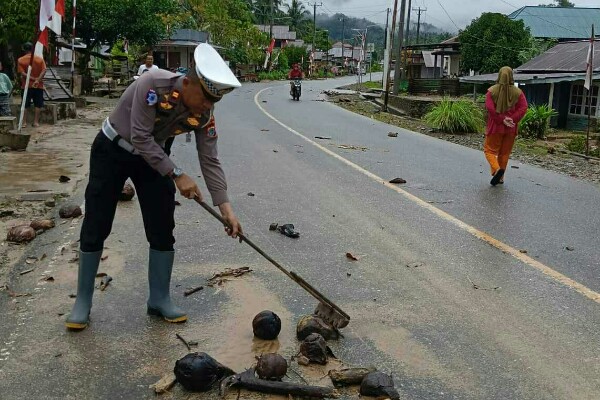 “Kami bergerak cepat membersihkan material agar masyarakat dapat kembali melintas dengan aman dan lancar”, ujar Iptu Luster Simanjuntak.