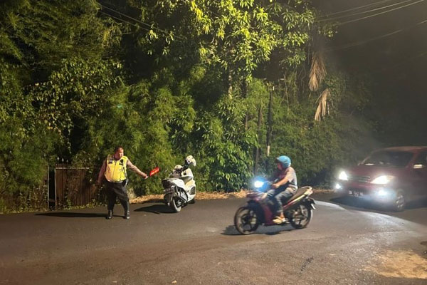 Personel Unit Lalu Lintas Polsek Malalayang menggelar “Pos Cakalang” atau polisi cegah kecelakaan, kemacetan dan pelanggaran, Sabtu (4/1/2025) malam, di ruas Jalan Bahu-Kleak, Kota Manado.