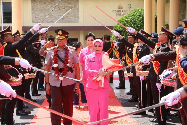 Tradisi farewell parade ini diawali dengan pengalungan bunga dan pemberian buket bunga oleh sepasang Polisi Cilik kepada pejabat lama dan isteri. Selanjutnya Irjen Yudhiawan disambut dengan tradisi pedang pora oleh sejumlah Perwira Pertama Polri, di lapangan Presisi Polda Sulut, Senin (30/9/2024) siang.