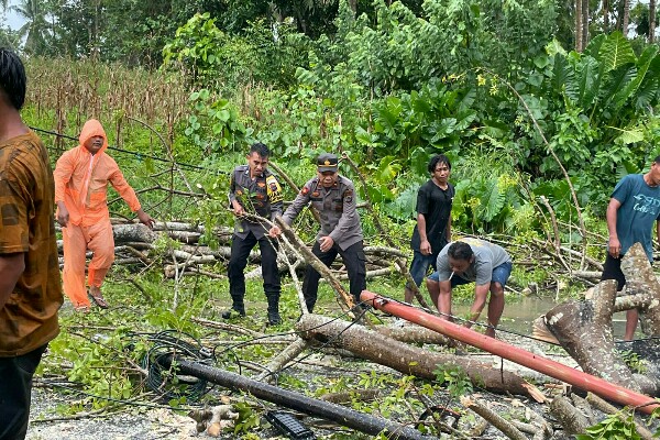 “Mendapat informasi kejadian, personel Polsek langsung turun ke lokasi kejadian. Personel bersama warga setempat langsung melakukan tindakan cepat melakukan pemotongan dan pembersihan batang pohon menggunakan chainsaw, sementara personel lainnya melakukan pengaturan arus lalu lintas,” ujar Kapolsek Pinogaluman Ipda Ismail Nani, yang turun langsung memimpin proses evakuasi.