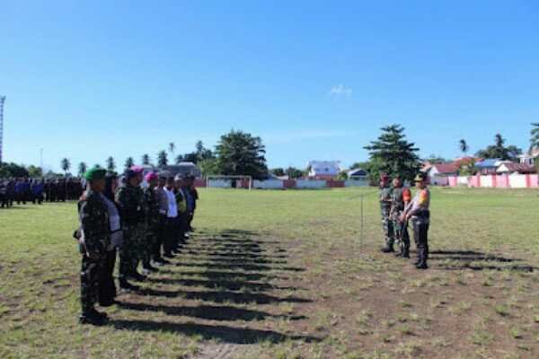 Apel gelar pasukan yang dilaksanakan di Stadion Dua Sudara tersebut dipimpin langsung oleh Kapolres Bitung AKBP Albert didampingi oleh Dandim 1310/Bitung Letkol Inf Dewa Made DJ, dan Danyonmarhanlan VIII Letkol Mar Helmi Hamsyir.