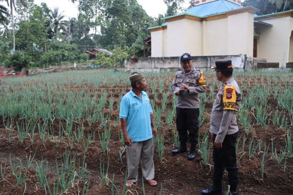 Wakapolres Kotamobagu Kompol Romel Pontoh, mengapresiasi langkah kreatif Imam Masjid Mualaf Al Hidayah Desa Sia, Herni Sumilat, yang memanfaatkan halaman masjid untuk menanam tanaman bawang.