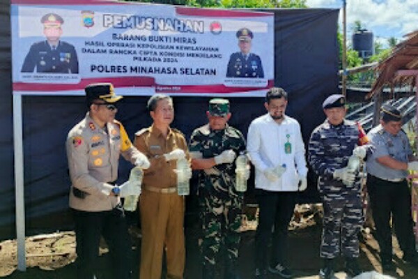 Pemusnahan barang bukti miras ini dihadiri oleh Kapolres Minsel AKBP Arianto Salkery bersama jajaran Forkopimda Kabupaten Minsel, Wakapolres Kompol Bartholomeus J. Dambe, para pejabat utama, perwira dan Kapolsek serta insan pers.