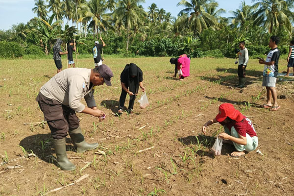 Kegiatan dipimpin oleh Kanit Binmas Polsek Wori Aiptu Junaidy Bakary, bersama penyuluh pertanian LPTI Markus Masoara, anggota Polsek Wori, serta para petani Desa Talawaan Bantik.