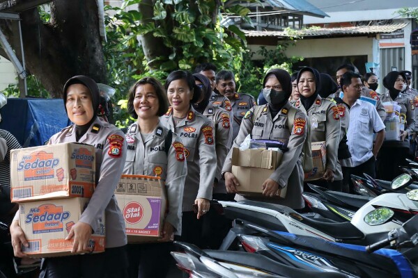 Jakarta – Polisi Wanita (Polwan) dari Polres Metro Jakarta Barat turun langsung ke lokasi banjir di kawasan Kebon Jeruk untuk menyalurkan bantuan kepada warga terdampak. Dalam aksi kemanusiaan ini, para Srikandi Bhayangkara membagikan paket sembako serta makanan ringan kepada masyarakat yang membutuhkan.