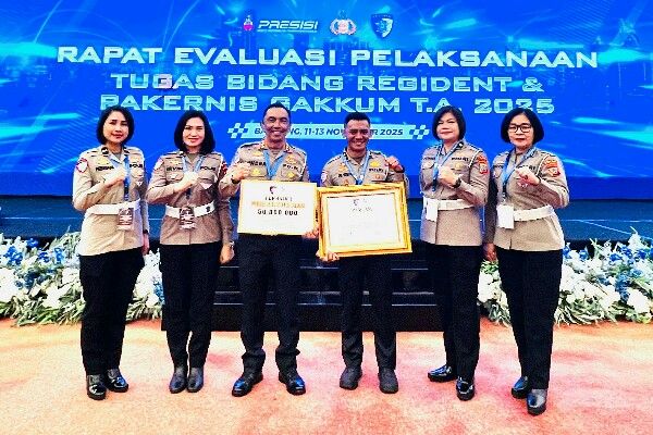 Penghargaan diserahkan langsung oleh Kepala Korps Lalu Lintas (Kakorlantas) Polri Irjen Pol Agus Suryonugroho, dan diterima oleh Dirlantas Polda Sulut Kombes Pol Indra Kurniawan Mangunsong, pada acara Rapat Evaluasi Pelaksanaan Tugas Bidang Regident dan Rakernis Gakkum Tahun Anggaran 2025, di Hotel Aryaduta Bandung, 12 November 2025.