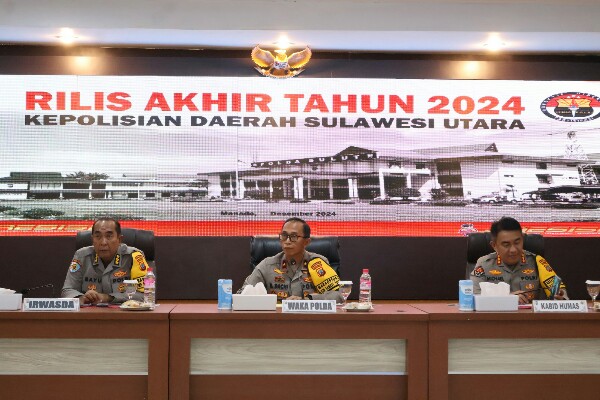 Hal itu dijelaskan Kapolda Sulut melalui Wakapolda Brigjen Pol Bahagia Dachi saat Rilis Akhir Tahun (RAT) 2024, yang digelar di aula Tribrata Polda Sulut, Senin (30/12/2024).