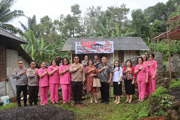 Aksi bedah rumah diawali dengan peletakan batu pertama oleh Kapolres Tomohon AKBP Lerry Tutu, pada hari Kamis (13/6/2024).