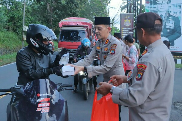 Kapolres AKBP Auliya Rifqie menyampaikan bahwa kegiatan ini merupakan bentuk nyata kehadiran Polri di tengah masyarakat, khususnya bagi mereka yang masih dalam perjalanan saat azan magrib berkumandang.