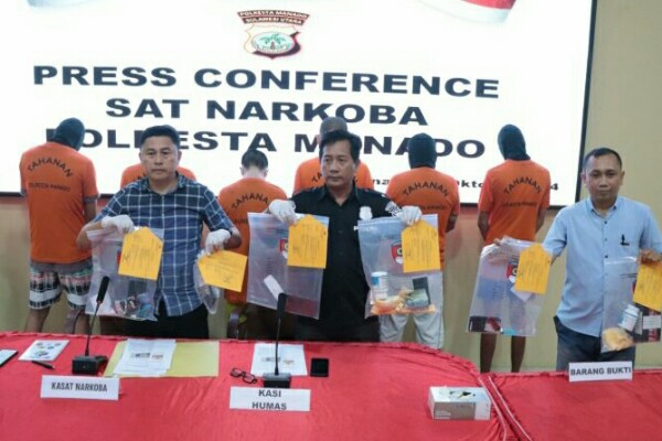 Penangkapan dilakukan di 4 lokasi berbeda di Kota Manado. Total ada 5 tersangka telah diamankan untuk kasus sabu, dan 2 pelaku untuk kasus obat keras.