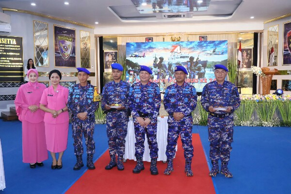 Syukuran ulang tahun Polairud ditandai dengan pemotongan tumpeng oleh Kapolda didampingi Wakapolda dan Dirpolairud, selanjutnya potongan tumpeng diserahkan kepada personel Polairud tertua dan termuda.