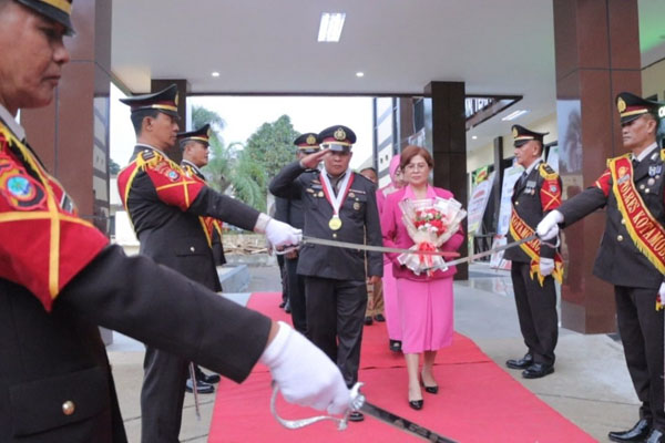 Suasana haru menyelimuti Mapolres Kotamobagu saat berlangsungnya upacara tradisi pedang pora, yang digelar untuk melepas personel yang memasuki masa purna bakti.