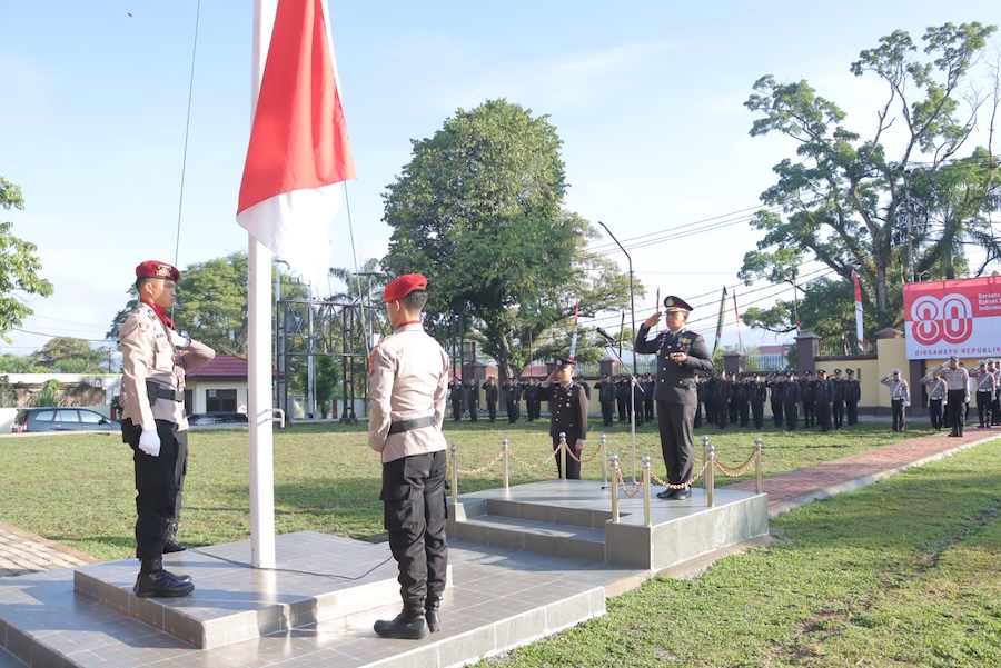 KOTAMOBAGU, Humas Polda Sulut – Kapolres Kotamobagu AKBP Irwanto menjadi Inspektur Upacara Hari Kemerdekaan le-80 Republik Indonesia di halaman Mapolres Kotamobagu, Minggu (17/8/2025).