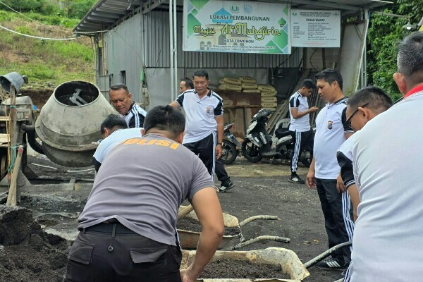 Dipimpin langsung oleh Wakapolres Tomohon Kompol Stenly Mawidingan, puluhan personel dikerahkan untuk membersihkan dua rumah ibadah di Kota Tomohon.